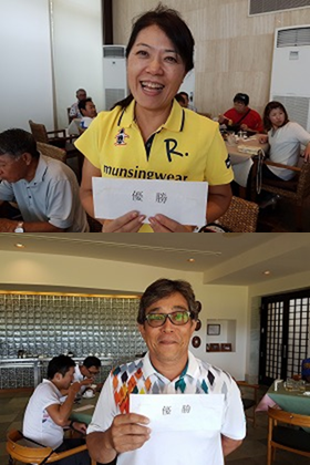 17番は再び金森が10を叩いてついにその差は一つとなった。最終ホールはハンデをもらえる古山はもちろんカウントバックの勝利を疑うことなくルンルン気分でプレー。逆にまだリードがありながら追い詰められた金森は、それでもまさか同じ事が2度も続けて起きるはずはないと自分に言い聞かせながら懸命に腕を振ったが、ここでもまた10を叩いてしまいジエンド。結局前回同様、3ダウンの残り4ホールから古山が見事な逆転勝利を収め、3回戦進出を決めた。 |
