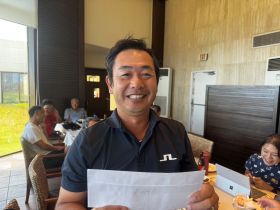 マンギラオで行われた2月15日の週例会に17名が参加しました。前週タロフォフォで史上3人目のニアピン3個&ドラコンゲットの偉業を達成した服部はこの日も好調で45/45=90のネット70で優勝かと思われたがまさかの3位。前々週タロフォフォの白でグロス77の野口はこの日も好調で40/44=84のネット69で優勝かと思われたがまさかの2位。同ネット69で優勝したのは慎太郎。37/39=76はマンギラオで3回目の自己ベストタイ。今年は開幕戦こそ$4罰金の7位だったが、その後2位・2位・3位・4位・1位と5戦連続賞金獲得中です。