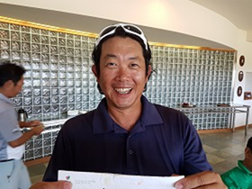 令和最初の週例会に24名が参加し、3週連続でタロフォフォということもあり、罰金は僅かに5人で合計$22と人数・金額共に今期最少となり、新しい時代の幕開けに相応しい例会となった。7位はネット72の黒岩。3位はネット70の多香子。2位は前週レンタルクラブで3位に入った鳥越が、この日は自分のクラブを忘れず持参し、前週よりも2打少ないグロス85、ネット68で1ランクアップの2位。そして令和の初優勝に輝いたのは関根。今年初の80台、グロス89、ネット65で今期2勝目です。 |