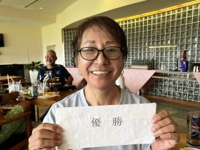 6月29日タロフォフォでの月例会に12名が参加しました。風もなく素晴らしいコースコンディションで罰金は$2の柴田と$1の徹のみ。上位3人のネットは60台と久しぶりに締まった月例会となった。3位はネット69の神野。3月の2週連続優勝以来のグロス86で優勝かと思われたが3位。2位は同ネットの藤井。ダボ・トリを叩きながらも1年ぶりのグロス77。これまた優勝かと思われたが2位。ネット68で優勝は舘野。前半は44を叩くも10番から6連続パーで後半は39。今季2勝目を挙げました。