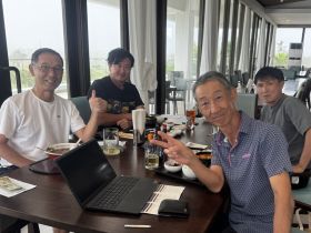 3月最初の例会に8名がファイネストに集まりましたが、あいにくの天気で中止となるはずが、マッチに燃える古山の熱意に押され対戦相手の金森、立会人青木と藤井の4名で九十九会史上最少人数での例会が行われました。蓋を開けてみると雨はたいしたことなく短い中断が一度だけ。終盤には青空も広がり無事ホールアウト。優勝争いは罰金$1の金森を除き1打差の大接戦。3位はニアピンを2個取った青木。2位はドラコンを取った古山。そしてネット72で優勝したのはお遊びを取った藤井でした。