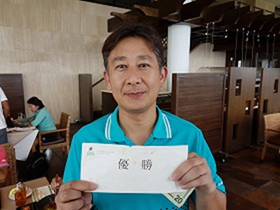 マンギラオ月間4戦目にゲスト3名を含め18名が参加した。前週は7人が罰金なしで優勝した新崎のネットは73と今月最高の結果を収めたが、この日は満額4人を含む2位から全員が罰金と一転して今月最悪の結果に。バーディーも全体で僅かに2個。うち1個はゲストで会員としては貴之の1個だけで今期最少であった。3位と2位は共に罰金$1の橋本と慎太郎。そしてネット77で唯1人ギリギリ罰金を免れた藤崎が1年ぶりの優勝を飾った。 |